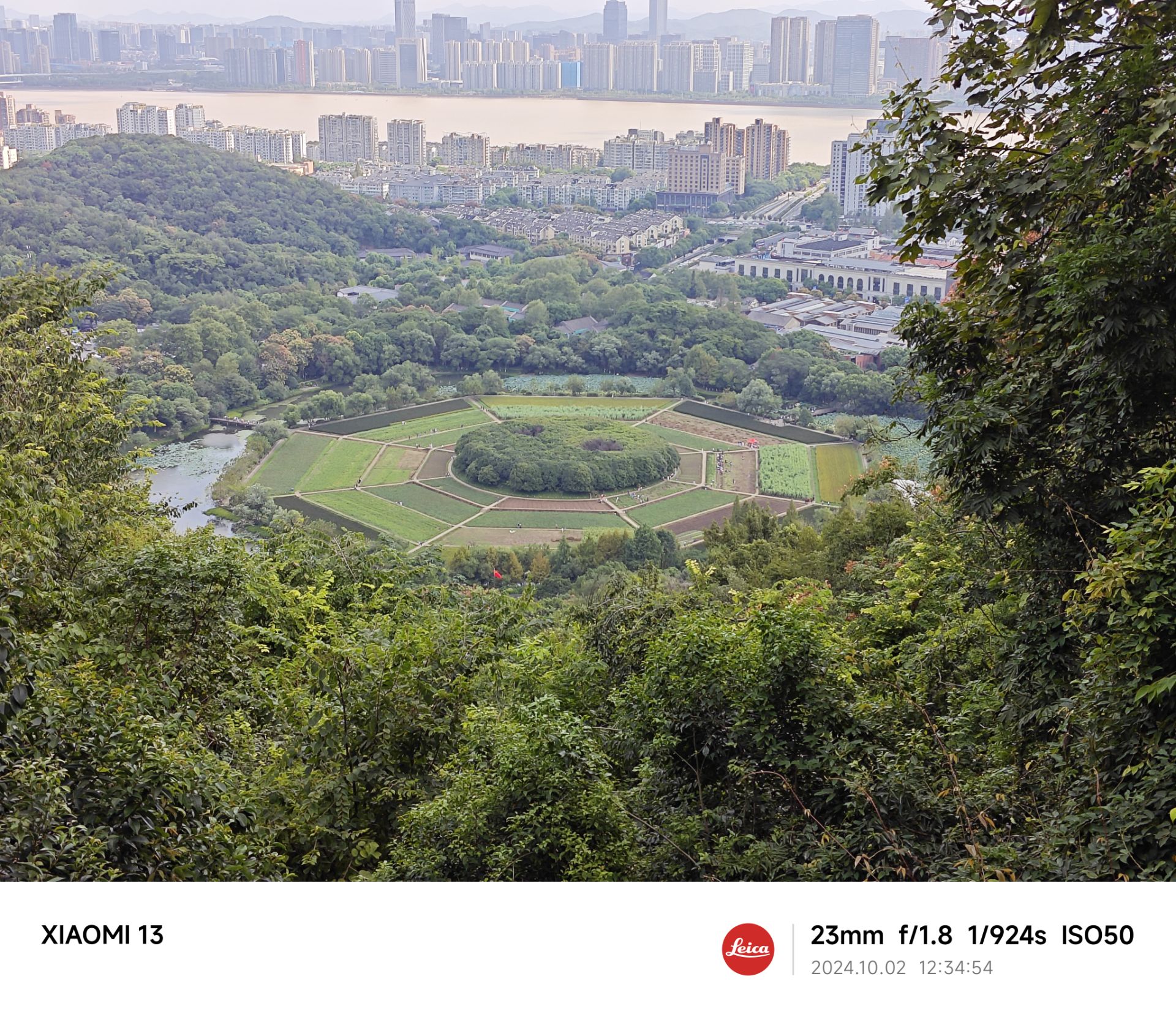 这张照片拍的是西湖旁边的八卦田,将照片对着地图摆一摆可以推测出我是从其西北处的山上拍的,