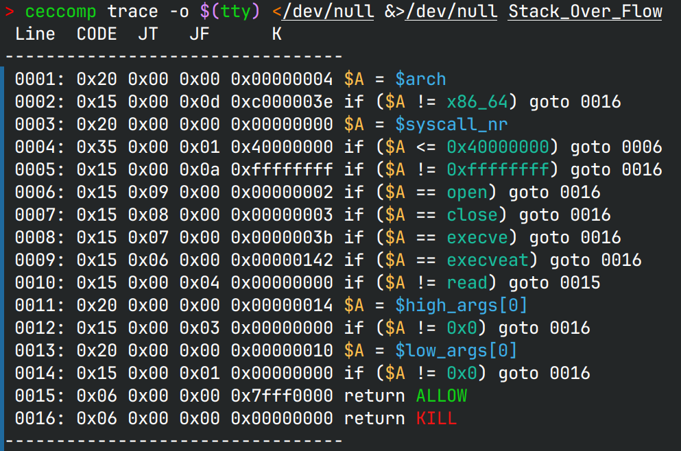 程序有两个stage,第一个stage会设置seccomp限制,紧接着在第二个stage让用户输入内容到堆上, 随后控制rsp到堆上。观察读入位置和rsp,我们是可以操作栈溢出的。